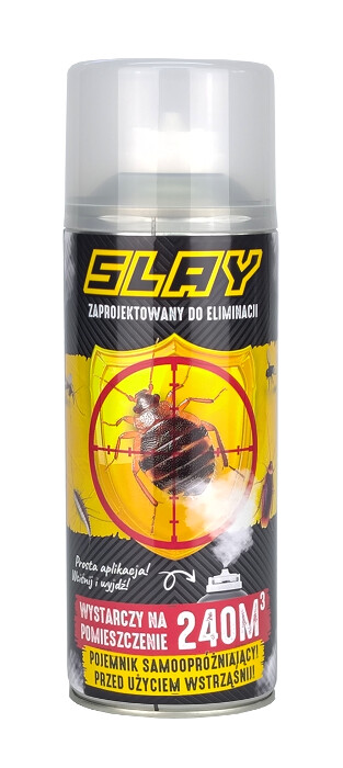SLAY Bomb na pluskwy 400 ml to skuteczny preparat do zwalczania owadów biegających i latających w pomieszczeniach. Działa m.in. na pluskwy, pchły, karaluchy, rybiki, komary i muchy.