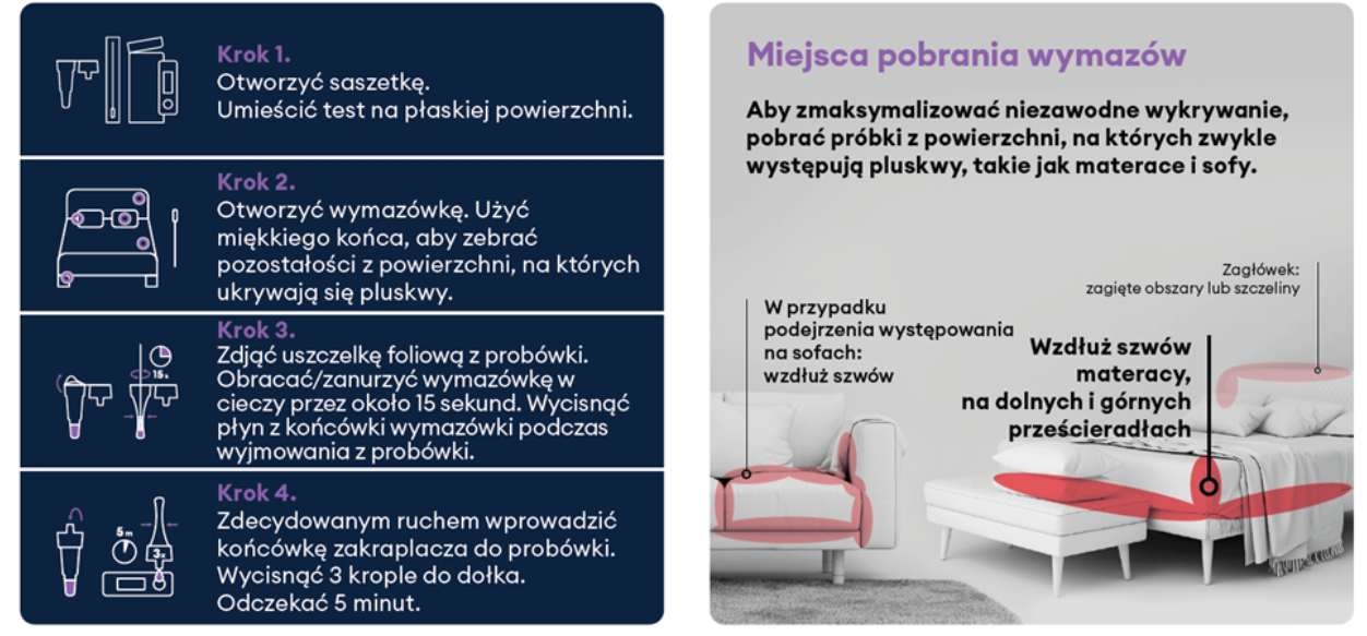 Test do wykrywania pluskiew – to nowe, rewolucyjne narzędzie do wykrywania pluskiew, które umożliwia specjalistom zajmującym się zwalczaniem szkodników identyfikację populacji nawet na niskim poziomie z dokładnością ponad 90%.